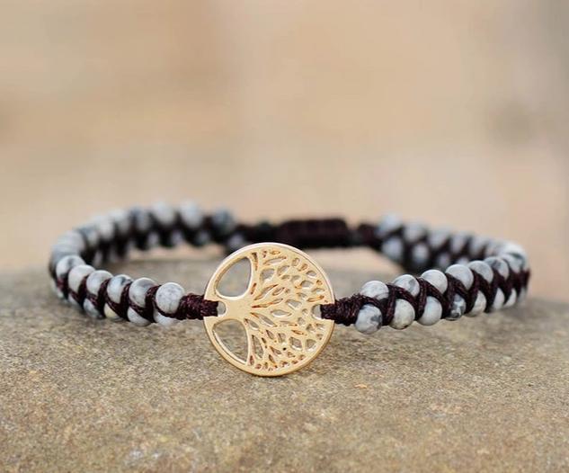 Porter cet excellent Porte-bonheur est le meilleur moyen d’attirer la chance ! Ce Bracelet Arbre de Vie est fait à la main, avec des belles pierres de Jaspes Grises !