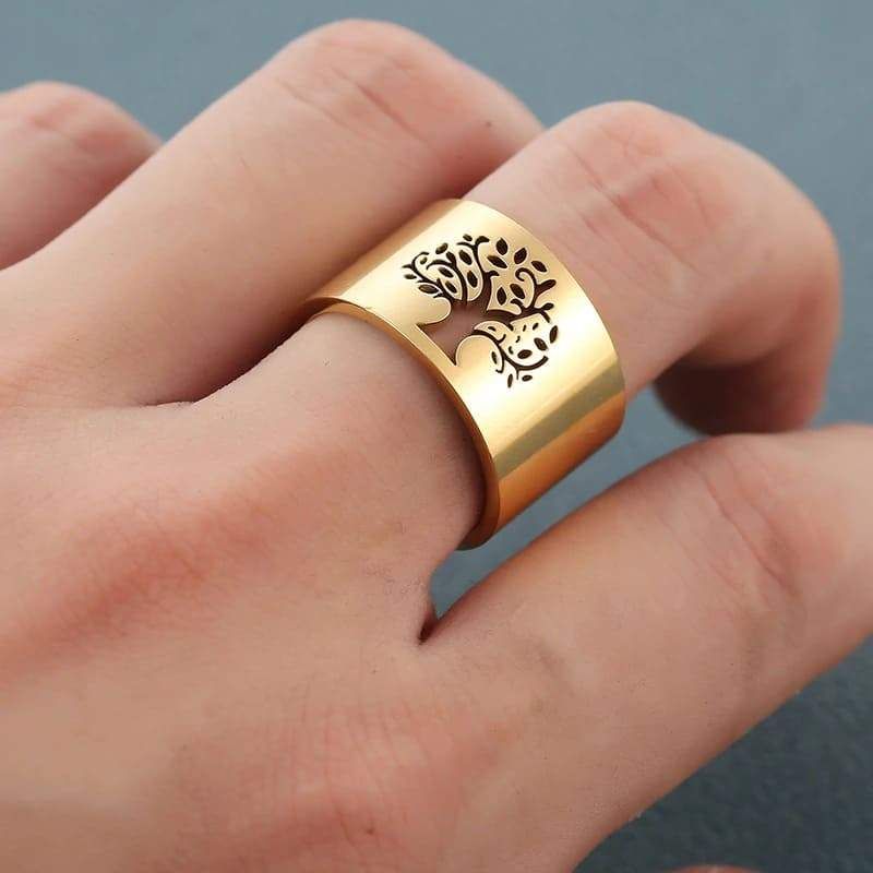 bague arbre de vie or jaune acier