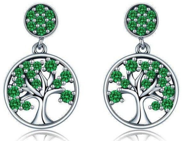 Craquez pour cette petite paire de Boucles d’Oreilles Arbre de Vie ! Elle font contraster un beau Vert Émeraude sur de l’Argent Massif, un régal !