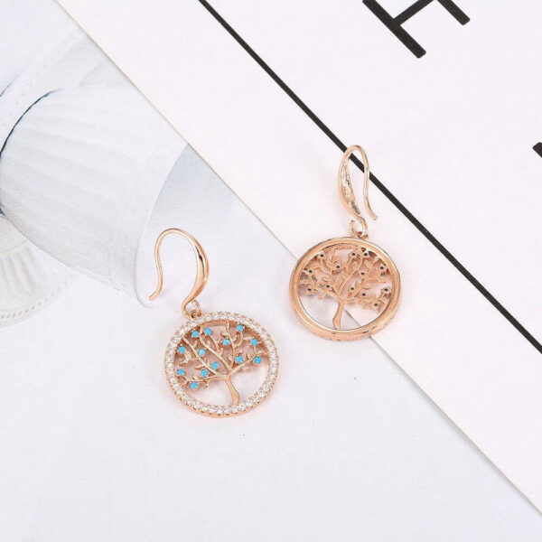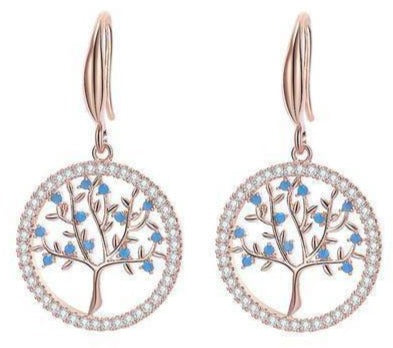 Ces belles Boucles d’Oreilles Arbre de Vie de couleur Or Rose vous mettront en valeur à coup sûr ! Les feuilles sont ornées de petits cristaux bleus !