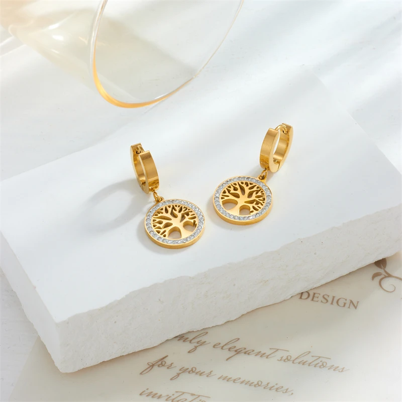 Boucles d’Oreilles Arbre de Vie Dorées en Acier Inoxydable – Élégance et Raffinement