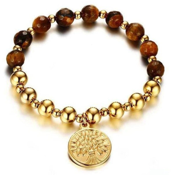 Ce Bracelet Arbre de la Vie est très particulier ! Il se compose principalement d’Acier et il est plaqué or. Il incarne la Sagesse millénaire et intemporelle de l’Arbre, présent dans toutes les cultures !