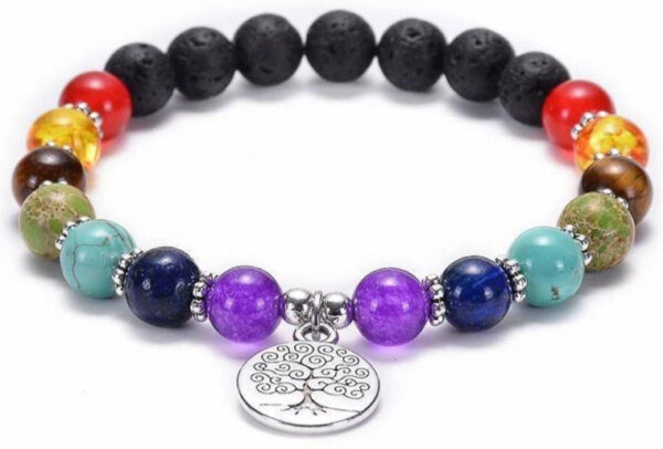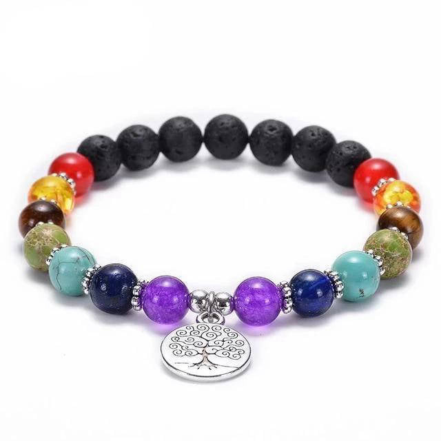 Vous cherchez un Bracelet Arbre de Vie qui représente les 7 chakras ? Nous vous proposons celui ci, conçu en pierre de lave naturelle !