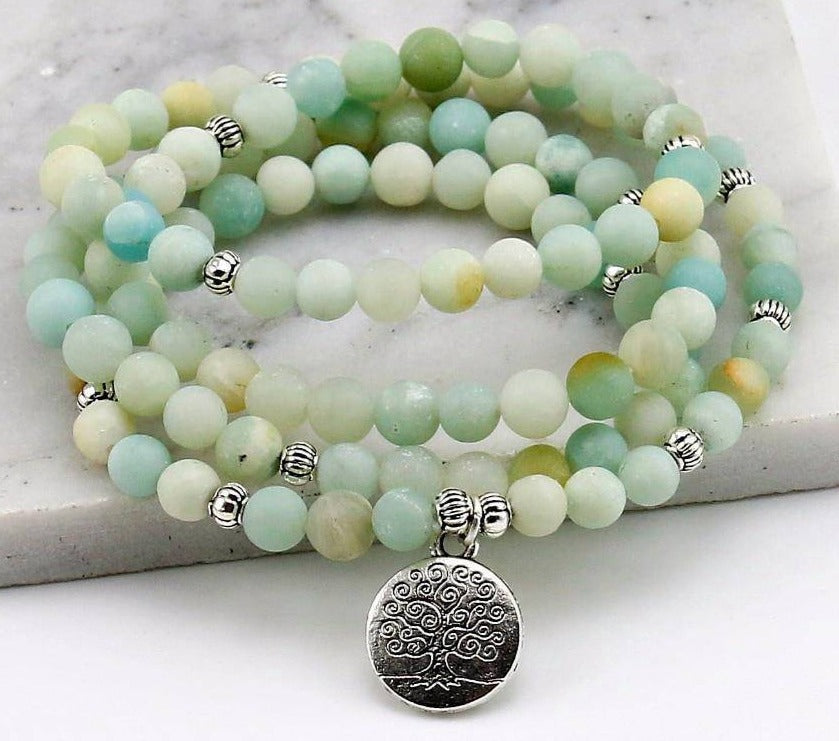L’Amazonite éveille la joie de vivre ! C’est une pierre qui favorise également la communication et le contact avec autrui. Ce Bracelet Arbre de Vie peut vous aider à travailler sur le chakra de la gorge !