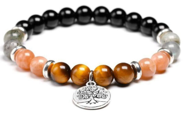 Ce Bracelet Arbre de Vie combine Onyx Noir, Oeil de Tigre et Labradorite ! Il est absolument parfait pour travailler sur son ancrage à la Terre !
