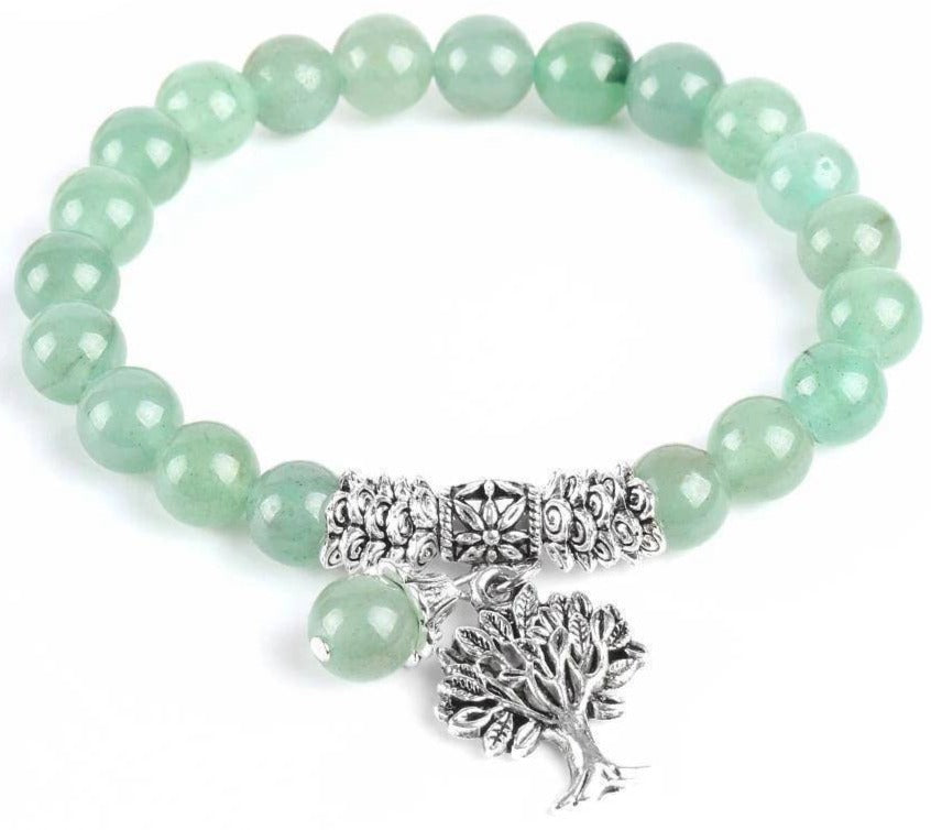 L’Aventurine Verte favorise la croissance et elle est idéale pour la méditation. Nous vous la proposons ici sous forme de Bracelet Arbre de Vie !