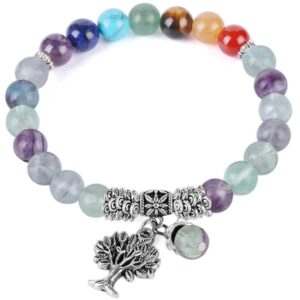 L’Arbre de Vie qui décore ce bracelet apporte une touche de sagesse. Ce symbole spirituel sacré est universel et nous enseigne l’importance de tendre vers l’équilibre. Vous pouvez faire une méditation d’harmonisation des 7 chakras, accompagné de ce bijou.