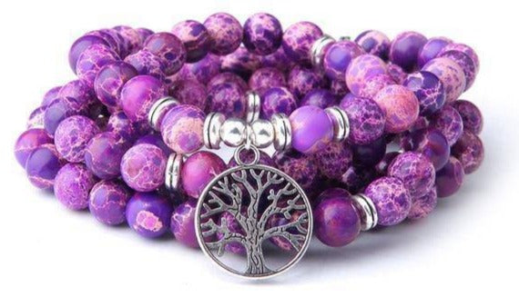 Le Jaspe Impérial Violet est directement lié au chakra coronal. Il favorise l’Eveil spirituel. Découvrez le dans ce beau Bracelet Arbre de Vie !