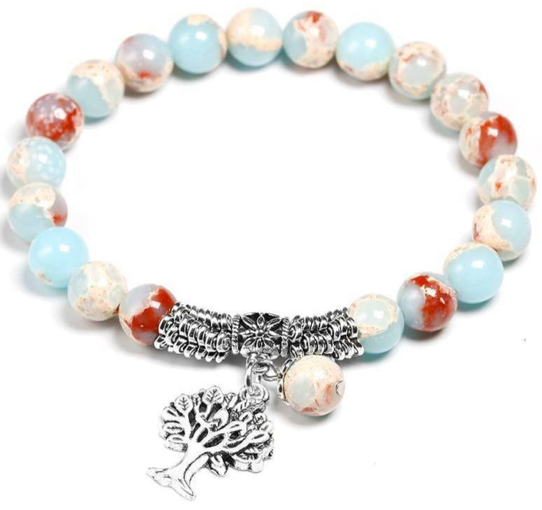 Conçu en pierres de Jaspe Impérial, ce Bracelet Arbre de Vie aide à avoir une profonde assurance, elle renforcera votre autorité !