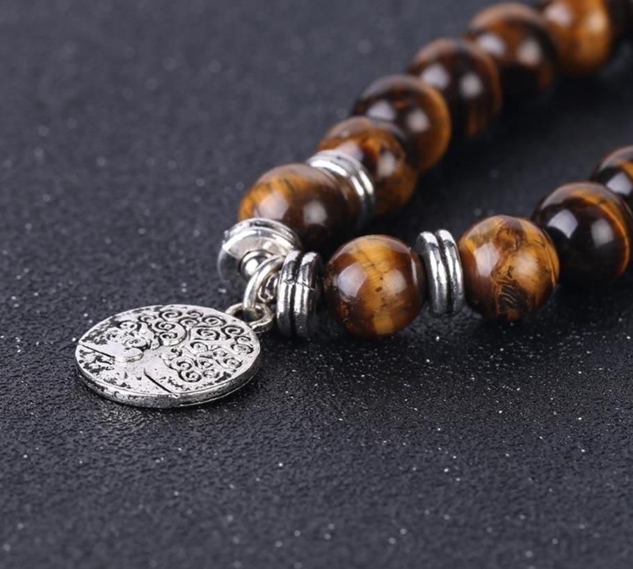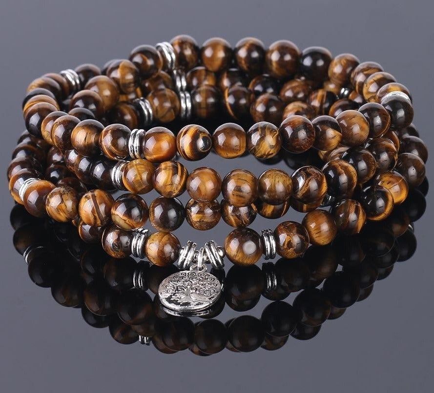 L’essentiel : Bracelet Arbre De Vie Mala De Protection 108 Perles Œil-de-tigre