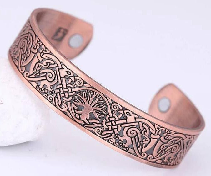 Ce Bracelet Arbre de Vie Nordique en Cuivre représente Yggdrasil, le pilier du monde dans la mythologie nordique ! Il incarne Force et Sagesse !