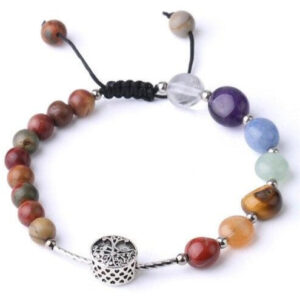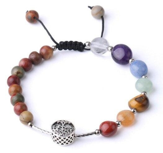 ✔️ Les 7 chakras sont en : Onyx Rouge, Jaspe, Oeil de Tigre, Aventurine Verte, Fluorite, Améthyste et Cristal de Roche