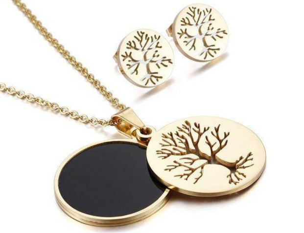 Découvrez ce beau Collier Arbre de Vie en Acier Or ou Argent ! Nous incluons également les boucles d’oreilles comme vous pouvez le voir sur les photos !