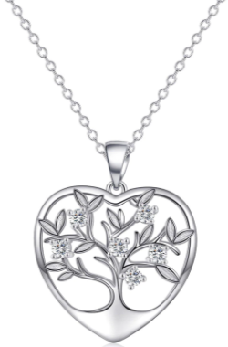 Ce beau Collier est réalisé en Argent pur 925. Il représente l’Arbre de Vie, sous forme de Cœur. Les feuilles sont ornées de jolis petits cristaux de Zircon !