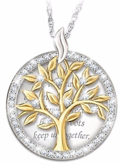 Cette jolie Médaille Arbre de Vie couleur Or Blanc présente un visuel unique. Son double pendentif comprend une jolie inscription positive en anglais. L’Arbre apparaît en or et certaines feuilles en argent.