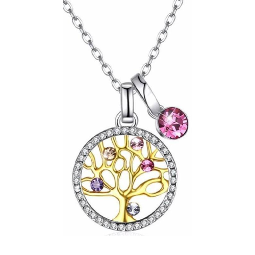 Ce Collier Arbre de Vie en Argent 925 est orné de Cristaux aux belles couleurs claires et vives ! L’Arbre doré est mis en valeur par un Cristal Rose de 0.45cm !