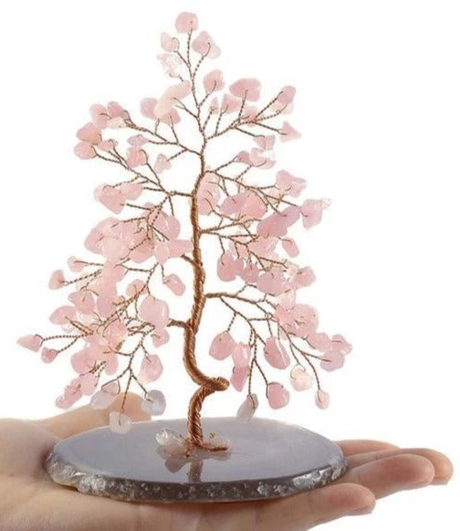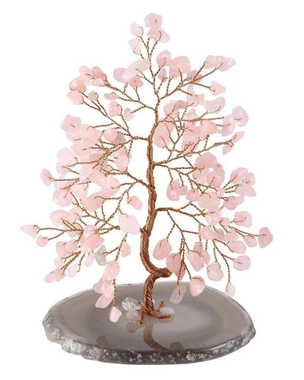 Cette Décoration Arbre de Vie est composée de Quartz Rose naturel, surnommée la pierre de l’Amour !