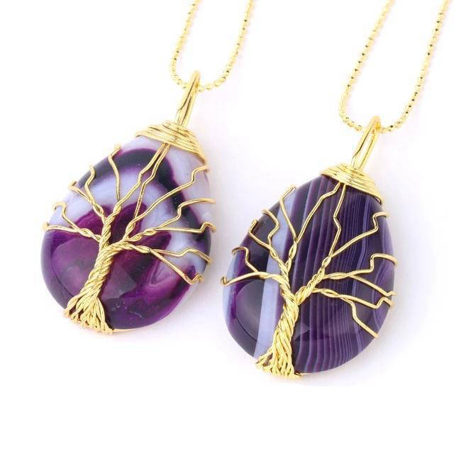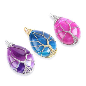 Découvrez notre gamme de Pendentifs en pierres semi-précieuses avec l’Arbre de Vie. Nous proposons différentes teintes d’Agates ainsi que du Cristal de roche.