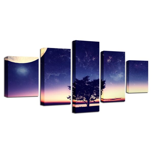 Découvrez un extraordinaire Tableau Arbre Noir et Blanc ! L’espace et la Lune en arrière plan souligne la forme de l’Arbre, bien enraciné sur la colline. L’Aube approche, illuminant la partie basse de l’oeuvre.
