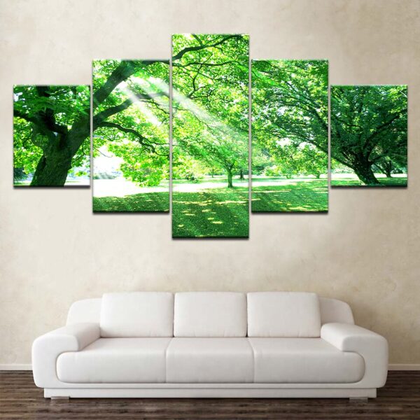 Ce très joli Tableau incarne la Nature ! Chaque Arbre apparaît resplendissant et plein de vitalité ! La couleur verte domine, offrant un véritable espace de verdure dans votre décoration intérieur ! Sur un papier peint clair, son charme sera encore plus fort !